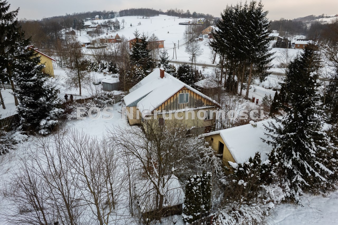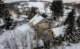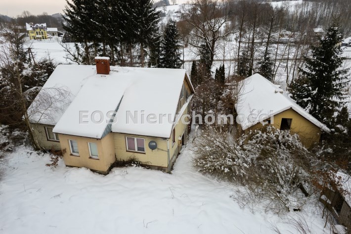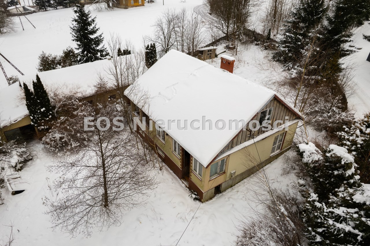 Budynek mieszkalny został w przeszłości przebudowany (dobudowana weranda, adaptacja poddasza). Obecnie obiekt jest niezamieszkały i wymaga generalnego remontu, co daje przyszłemu właścicielowi możliwość aranżacji według własnych potrzeb. Budynek gospodarczy również nie jest użytkowany i może pełnić funkcję zaplecza, warsztatu lub zostać zaadaptowany na inne cele.