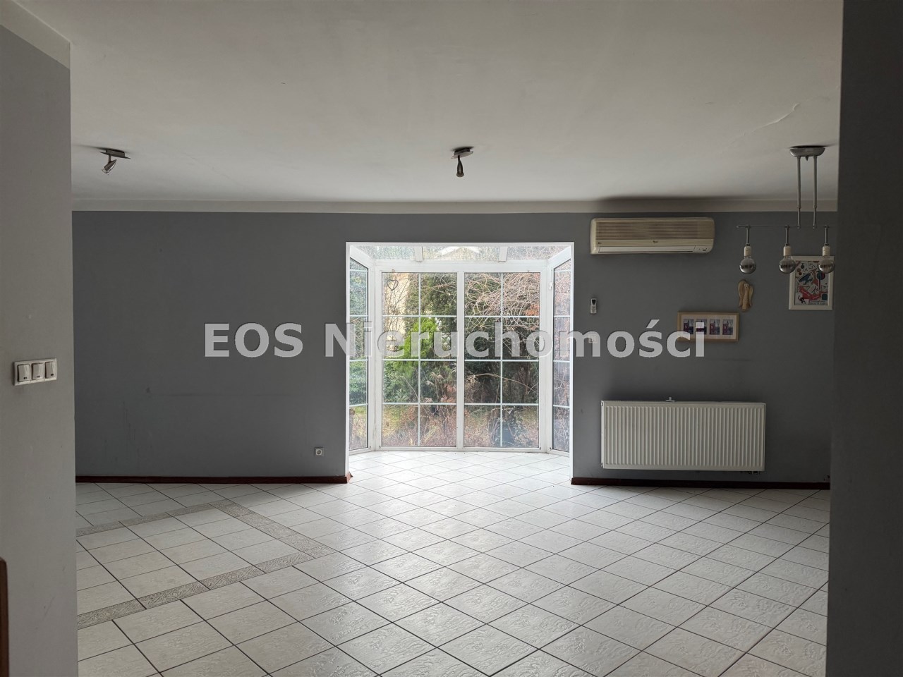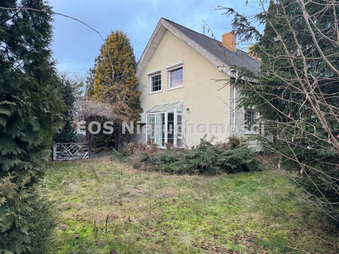 W środkowej części terenu zlokalizowane jest wolnostojący budynek mieszkalny jednorodzinny. Ogród zagospodarowany zielenią ozdobną, w tym okazałymi drzewami i krzewami oraz mniejszymi nasadzeniami wieloletnimi. Dojścia i podjazd z kostki betonowej. Nieruchomość posiada bezpośredni dostęp do drogi publicznej. Działka wyposażona jest w przyłącza energii elektrycznej, wody, kanalizacji sanitarnej, gazu.