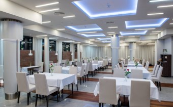 Budynek hotelu o pow. użytkowej 2 553,00 m2, pow. zabudowy 830,00 m2 , 4 kondygnacyjny (3 kondygnacje nadziemne i 1 podziemna), całkowicie podpiwniczony. Posiada restaurację, zaplecze konferencyjne, kręgielnię, bar, salę dyskotekową. Na 2 piętrach znajduje się 30 pokoi (na 68 osób), na podziemnej kondygnacji jest SPA (sauny, pokoje zabiegowe, mini siłownia), kręgielnia, sala dyskotekowa, na parterze są 3 sale konferencyjne, restauracja z salą weselną, (mogą pomieścić do 160 osób), recepcja, lobby, patio, mini bar.