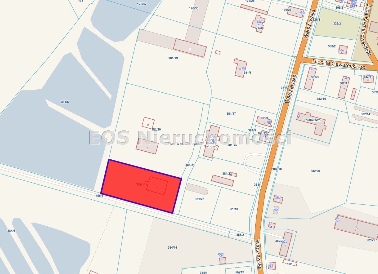 Uwaga: w dokumentacji ewidencyjnej i księdze wieczystej widnieje budynek, natomiast obecnie na działce znajdują się jedynie betonowe pozostałości po dawnej zabudowie. Obecnie trwają prace geodezyjne mające na celu uporządkowanie odpowiednich baz danych.