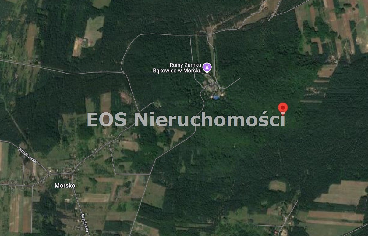 Na sprzedaż działka leśna o pow. 1,3138 ha, w kształcie zbliżonym do prostokąta o wymiarach około 37x380m. Nieruchomość położona jest w kompleksie leśnym wokół Ruin Zamku Bąkowiec w Morsku, podlegającym pod Nadleśnictwo Siewierz.