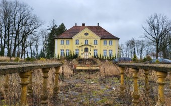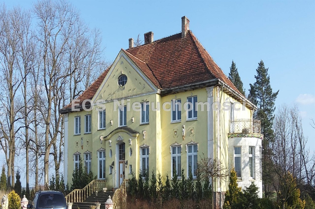 Nieruchomość stanowi kompleks pałacowo-parkowy z przełomu XIX i XX wieku, składający się z 7 działek o łącznej pow. 7,5256 ha, zabudowanych pałacykiem o pow. uż. 658,78 m2, budynku produkcyjno-usługowego dla rolnictwa o pow. zabudowy 453 m2 oraz budynku gospodarczego o pow. zabudowy 15 m2. Pałacyk jest budynkiem wolnostojącym, o trzech kondygnacjach użytkowych (dwie nadziemne, jedna podziemna) oraz poddaszem nieużytkowym o funkcji strychu. Cześć przyległą do obiektu stanowi dziedziniec w stylu dworskim o kolistym kształcie oraz elementami małej architektury. Pełni on funkcje dojścia i dojazdu do budynku. W skład kompleksu wchodzi staw z parkiem. Obiekt może stanowić doskonałą bazę pod działalność gastronomiczno - hotelarską.